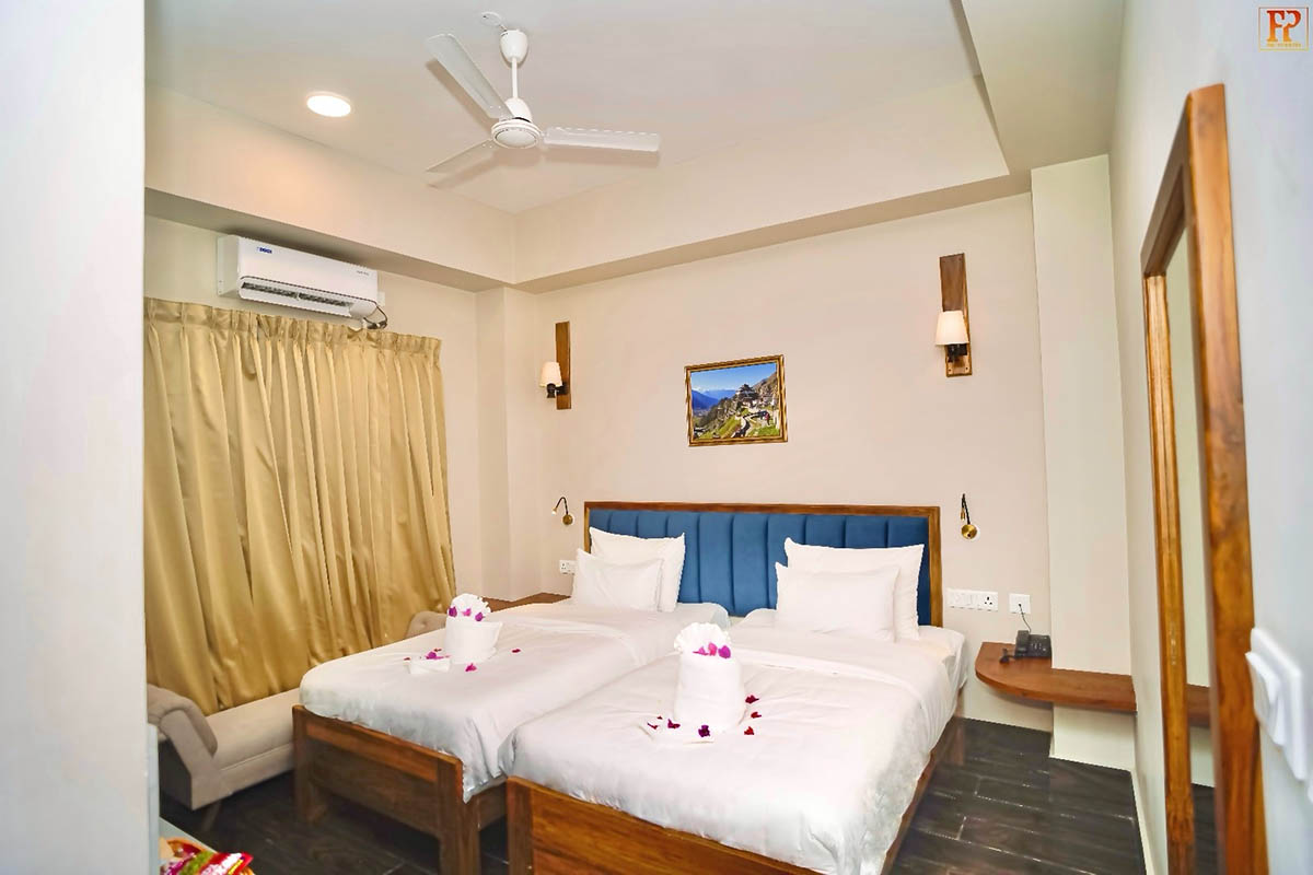 Perfect for 2 adults or 1 adult + 1 child. Cozy, comfortable ideal for solo traveller or friends. Includes: mini fridge, tea/coffee setup, smart TV, safety box, iron, and 10-inch mattress with 300 TC sheets.
